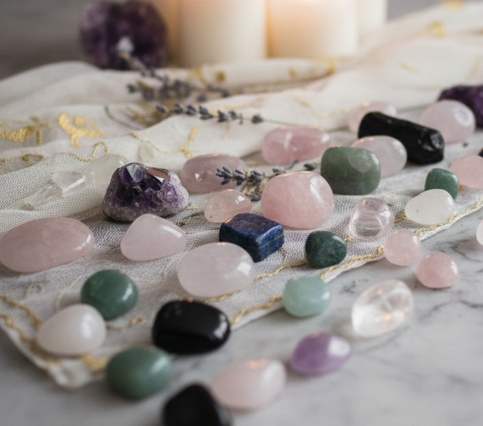 Les pierres utilisées pour les créations sont choisies par mes soins avec attention et respect. Je les choisis physiquement, chez un fournisseur français pionnier dans le domaine de l'importation de pierres.
